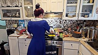 Horny housewife gets frisky in the kitchen preparing Thanksgiving dinner