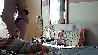 Mature redhead white woman in the cabin got her hairy pussy filmed on spycam